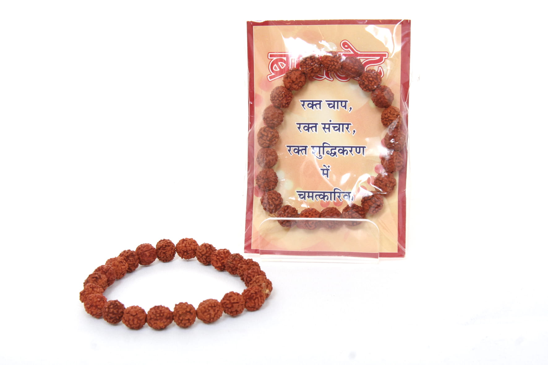 Bransoletka z Rudrakshu regulowana sznurkiem zawiera 20 koralików.