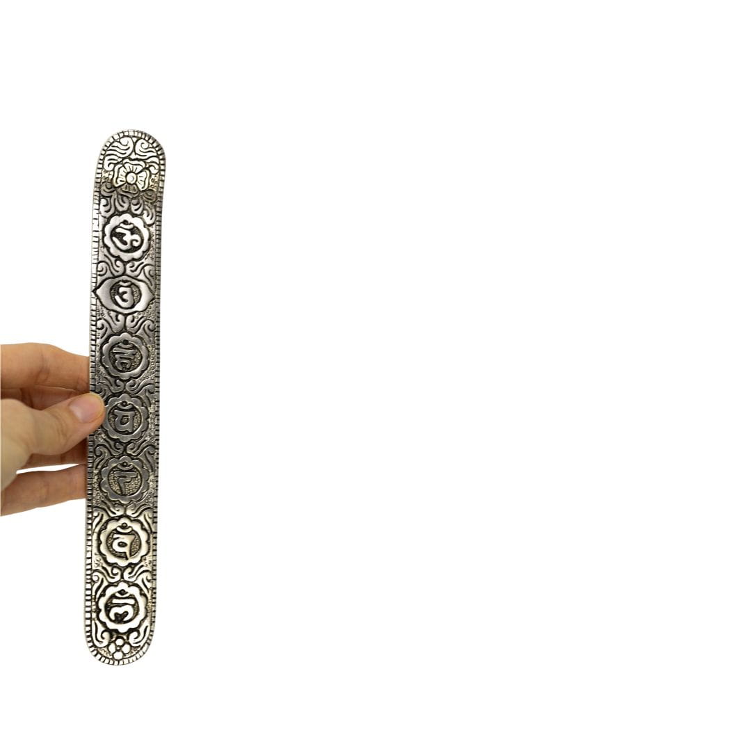 Indyjska, metalowa podstawka do kadzidełek zapachowych z czakrami