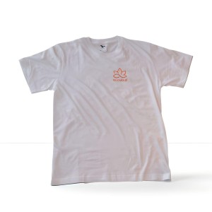 Biała koszulka z logo Instytutu Nirmala. Idealna do praktyki, warsztatów, spotkań rozwojowych lub po prostu – na co dzień.