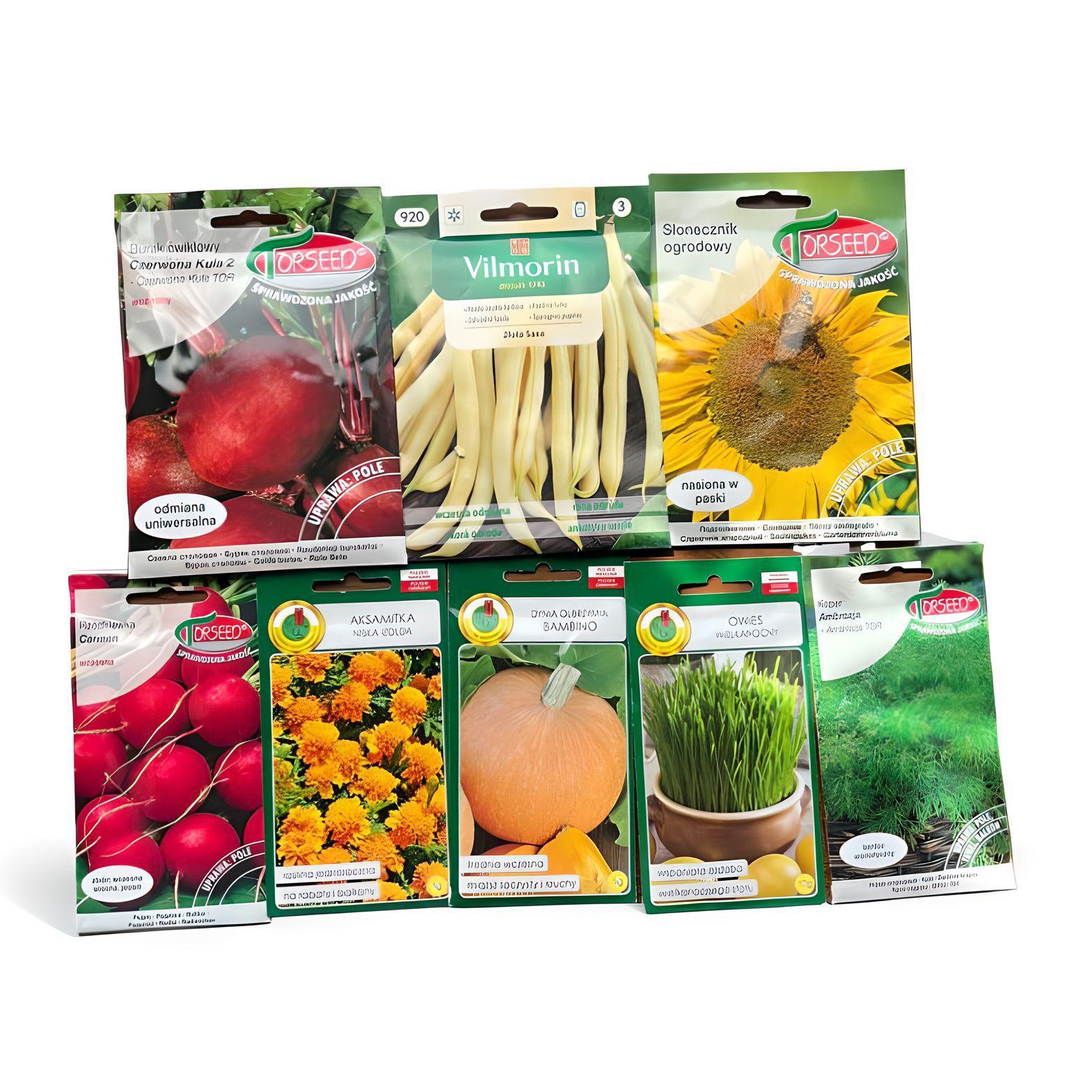 - 10 rodzajów nasion (m.in. aksamitka, słonecznik, owies, rzodkiewka, dynia)
